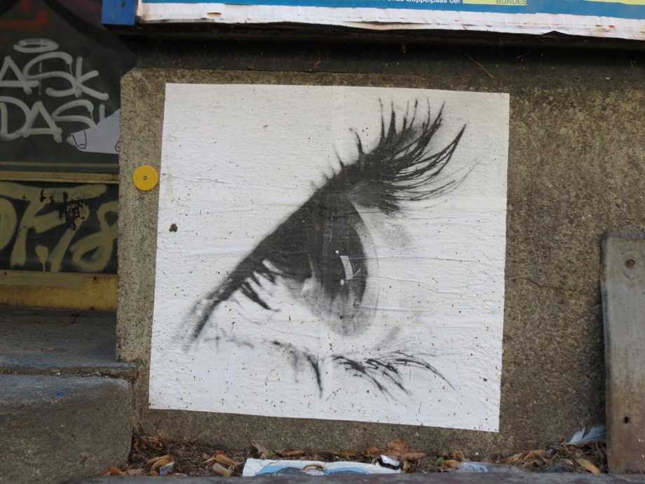 Im Laufe des Jahres 2014 erschienen einige große Poster mit Augenabbildungen auf fotografischer Grundlage. Sie waren wohl alle aus mehreren Bögen zusammengeklebt, …