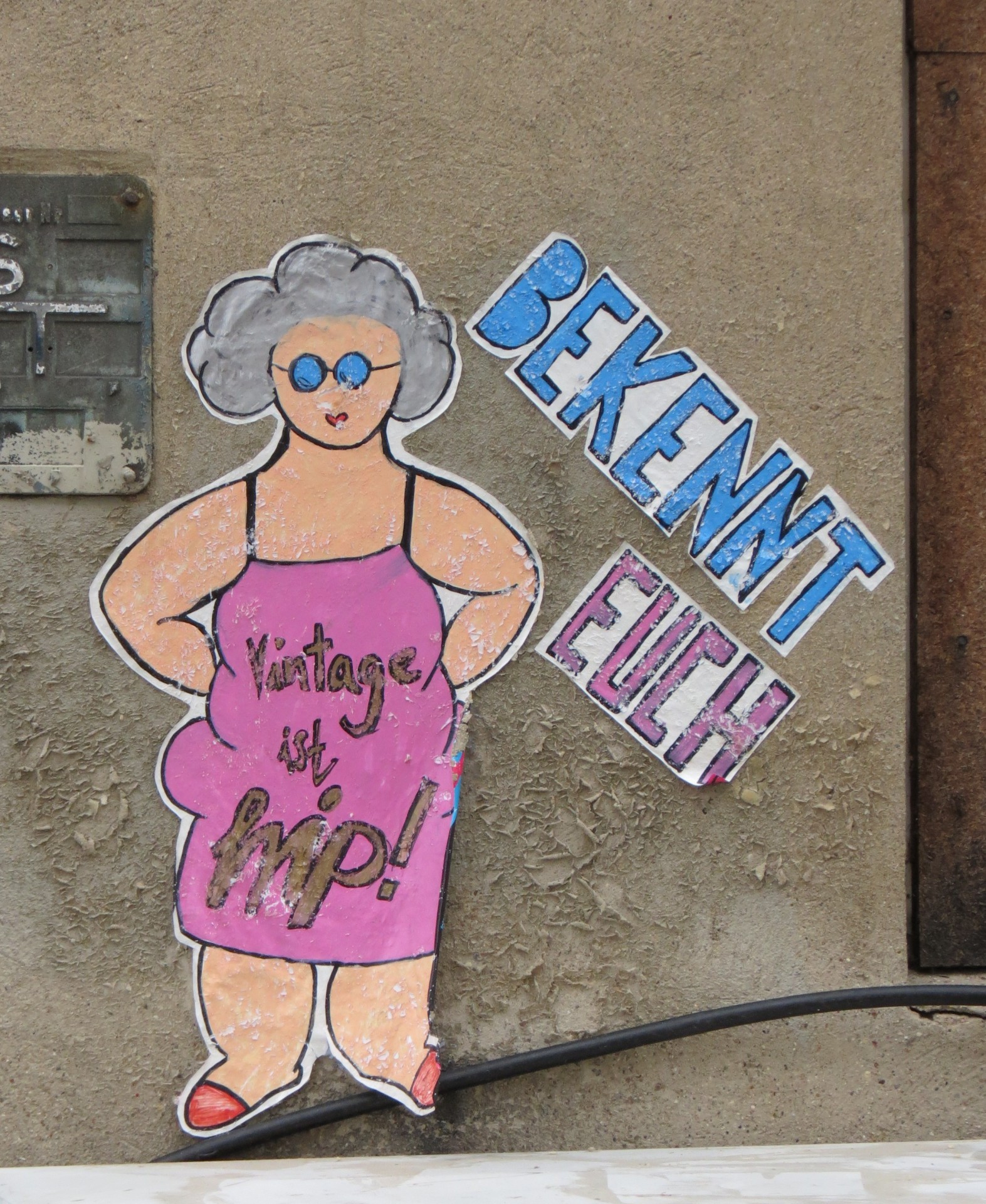 Dieser hübsche große cut-out-Sticker war einst ein Kumpel der Dickmadam, an derselben Wand des Hauses Landsberger Straße 52. Wie seine Nachbarin fiel …